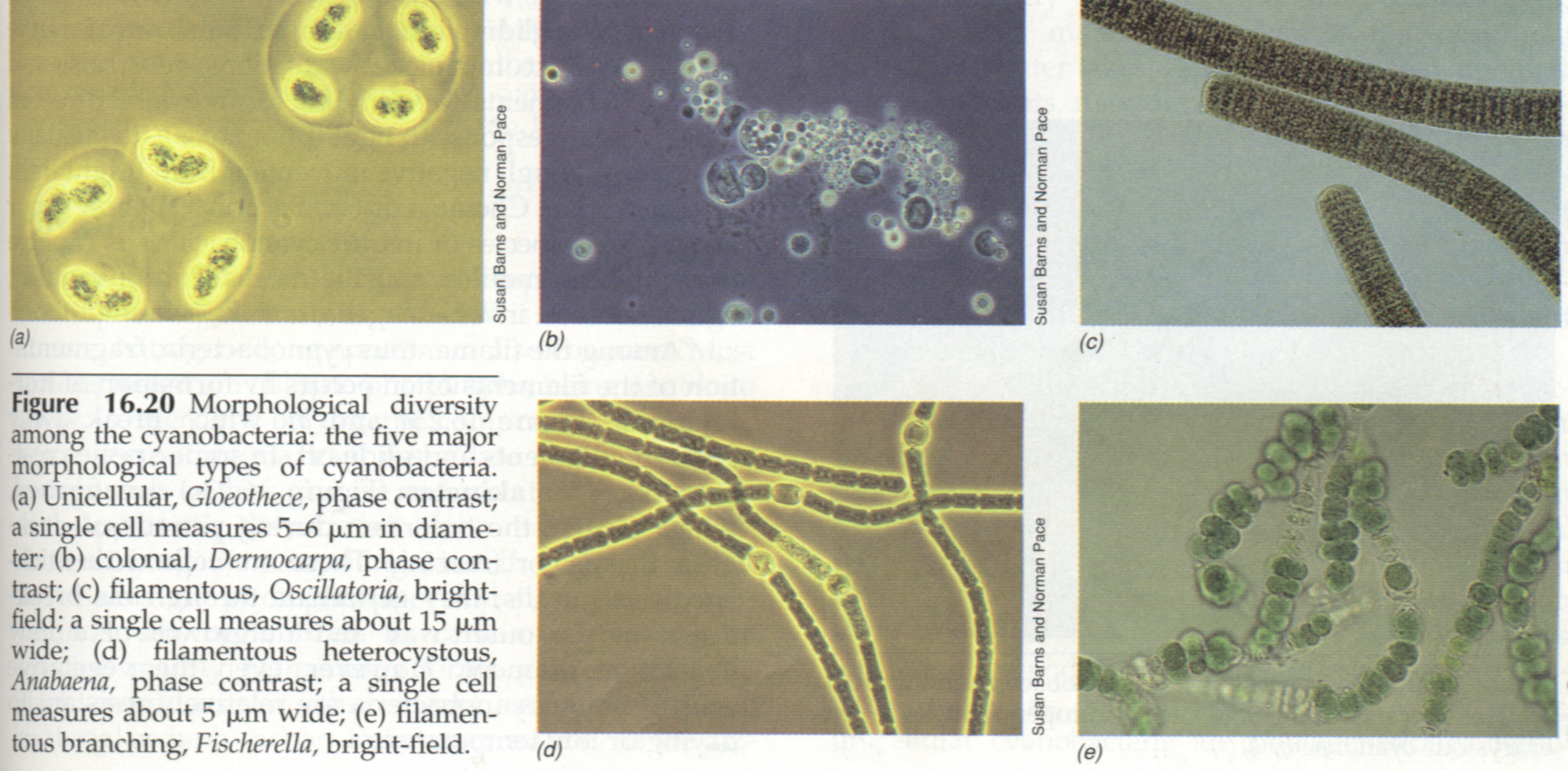 - 蓝细菌的细胞体积一般比细菌大,通常直径为3~10