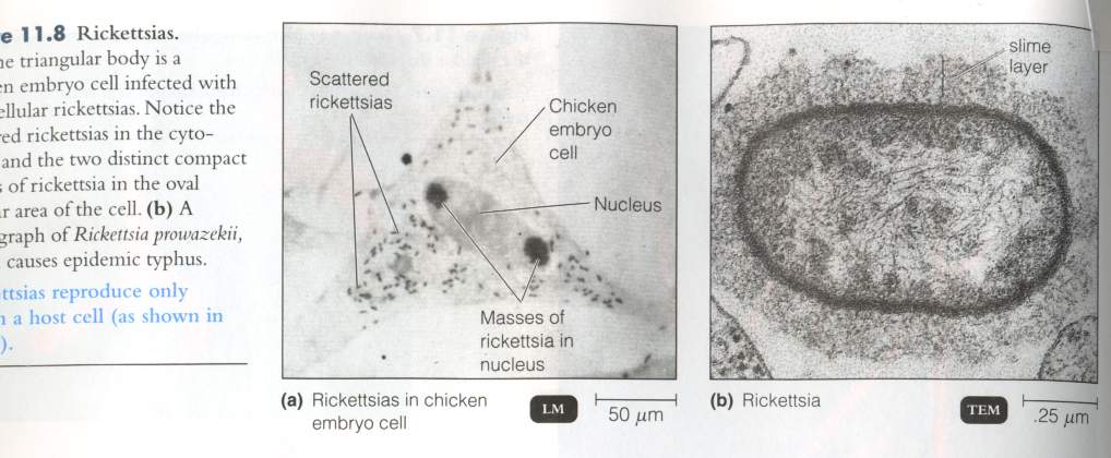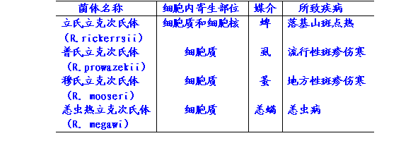 - ④在真核细胞内营专性寄生,其宿主为虱、蚤、蜱、螨等节肢动物和人、鼠等脊椎动物;