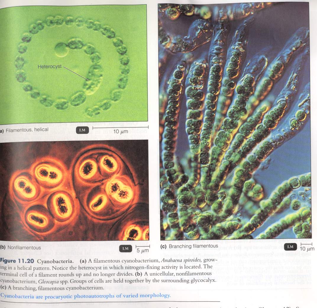 - 蓝细菌广泛分布在各种河流、湖泊和海洋等水体中,因抗逆境能力较强,所以在温泉和盐湖等一些极端环境中也能生活,它们甚至能通过贫瘠的岩石缝隙而向岩石内生长,是岩石分解和土壤形成的“先驱生物”。一些蓝细菌还能与真菌、苔类、蕨类、苏铁科植物、珊瑚甚至一些无脊椎动物共生。