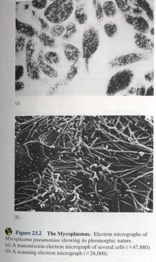 - ②细胞膜含甾醇,比其他原核生物的膜更坚韧;